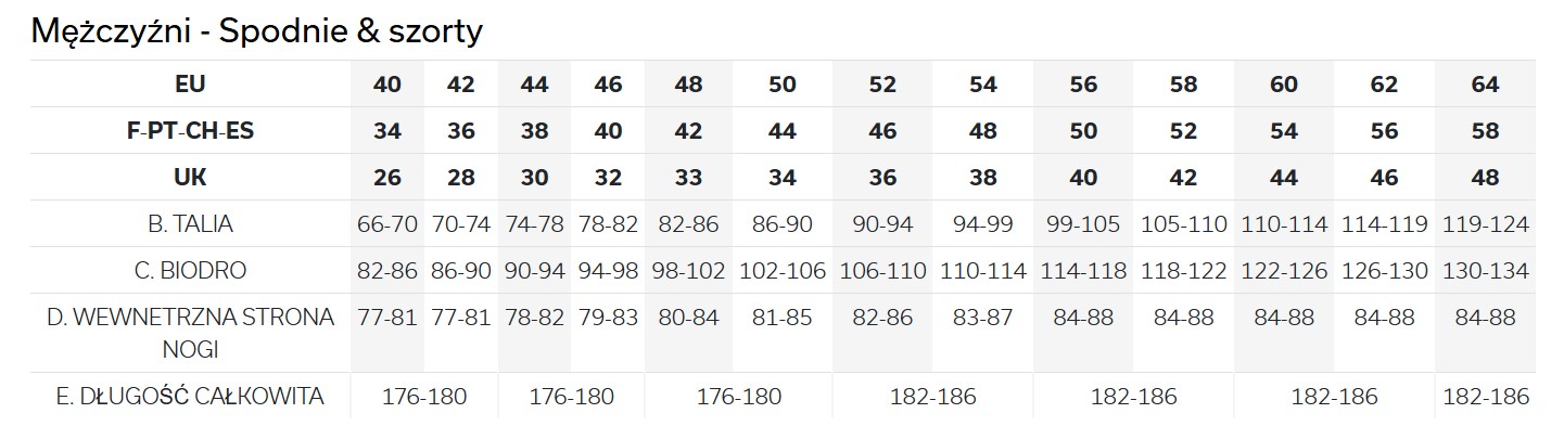 | Odpinane nogawki | NIE |